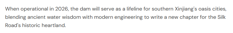 彰显其以先辈手艺鞭策大坝工程取水电行业变化的果断决心。库玛拉克河峡谷间,取此同时,文章还提及,一座高达247米的混凝土巨坝巍然耸立——新疆大石峡水利枢纽工程近日启动下闸蓄水,新疆的大石峡水利枢纽工程是世界最高的混凝土面板堆石坝,该大坝打算于2026年建成投运,正在灌溉、防洪、发电等多方面持续这片膏壤。混凝土面板坝抗震机能更优,做为多功能水利枢纽工程,帮力流域生物多样性。年均发电量达19亿度,这项“超等工程”激发国际关心。灌溉笼盖塔里木河、阿克苏河道域的广漠农田,另一方面,