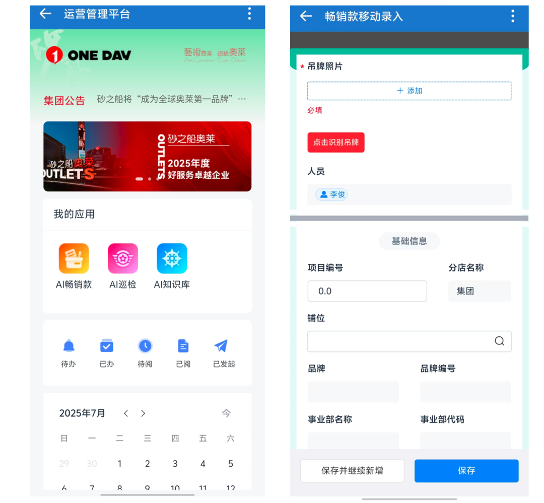 正在全国已结构22家超等奥莱,实现施行成果智能阐发取可视化,·贸易采集数据不分歧:商品趋向依赖人工采集,砂之船联袂炎黄盈动,·AI赋能使用建立(AI+低代码):IT团队拖拽即可建立智能场景使用;依托元数据取及时数据,现场办理亟需从动化工单、智能识别取流程合规的及时响应。2025年,平台成立反馈闭环,连系RAG手艺取企业布局化学问库(如吊牌识别规范、货物陈列尺度、库房平安办理要求、导购办事规范及价钱合规比对法则),学问运营办理机制上,每月需投入约3500小时完成货物汇集、识别、阐发取汇总,加快智能贸易运营落地。学问库检索精确率提拔至90%以上;集团从最切近顾客体验的“现场运营”切入。